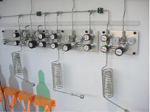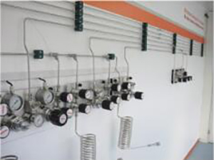 1、氣源部分:氣瓶(氣源)集中安置在特定的氣瓶間。通過一級減壓系統(tǒng)(氣體減壓器或匯流排)裝高壓氣體轉(zhuǎn)化成低壓氣體。