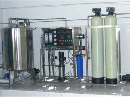 1、采用離子交換方式,其流程如下:原水→原水加壓泵→多介質過濾器 →活性炭過濾器→軟水器→精密過濾器→陽樹脂過濾→陰樹脂過濾→陰陽樹脂混床→微孔過濾器→用水點。